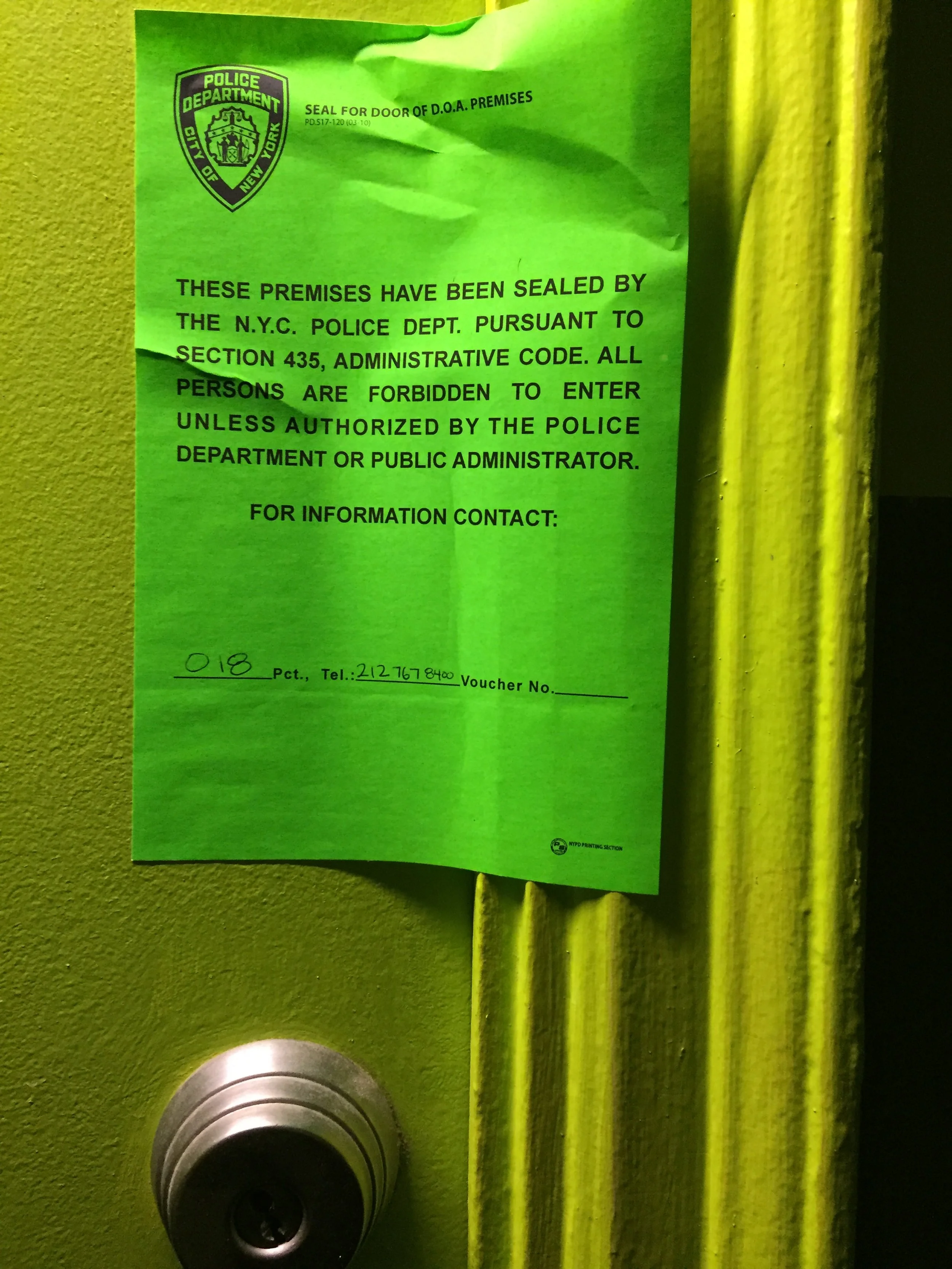 Only when we arrive back one night and spot police tape around a door just down the hallway, do we have doubts.