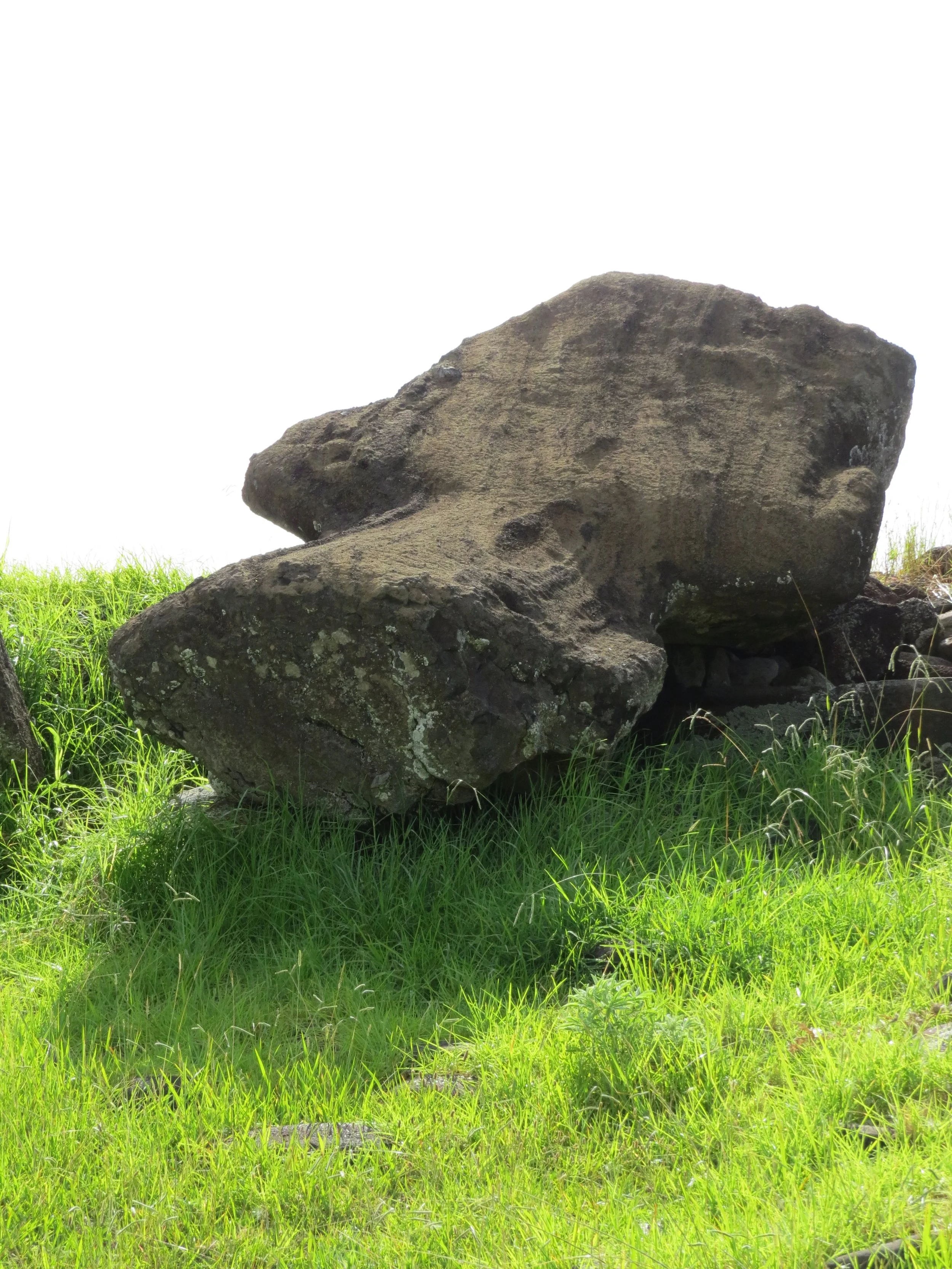 Once the guide pointed it out, we noticed moai that have fallen forward, on their faces, and cracked.