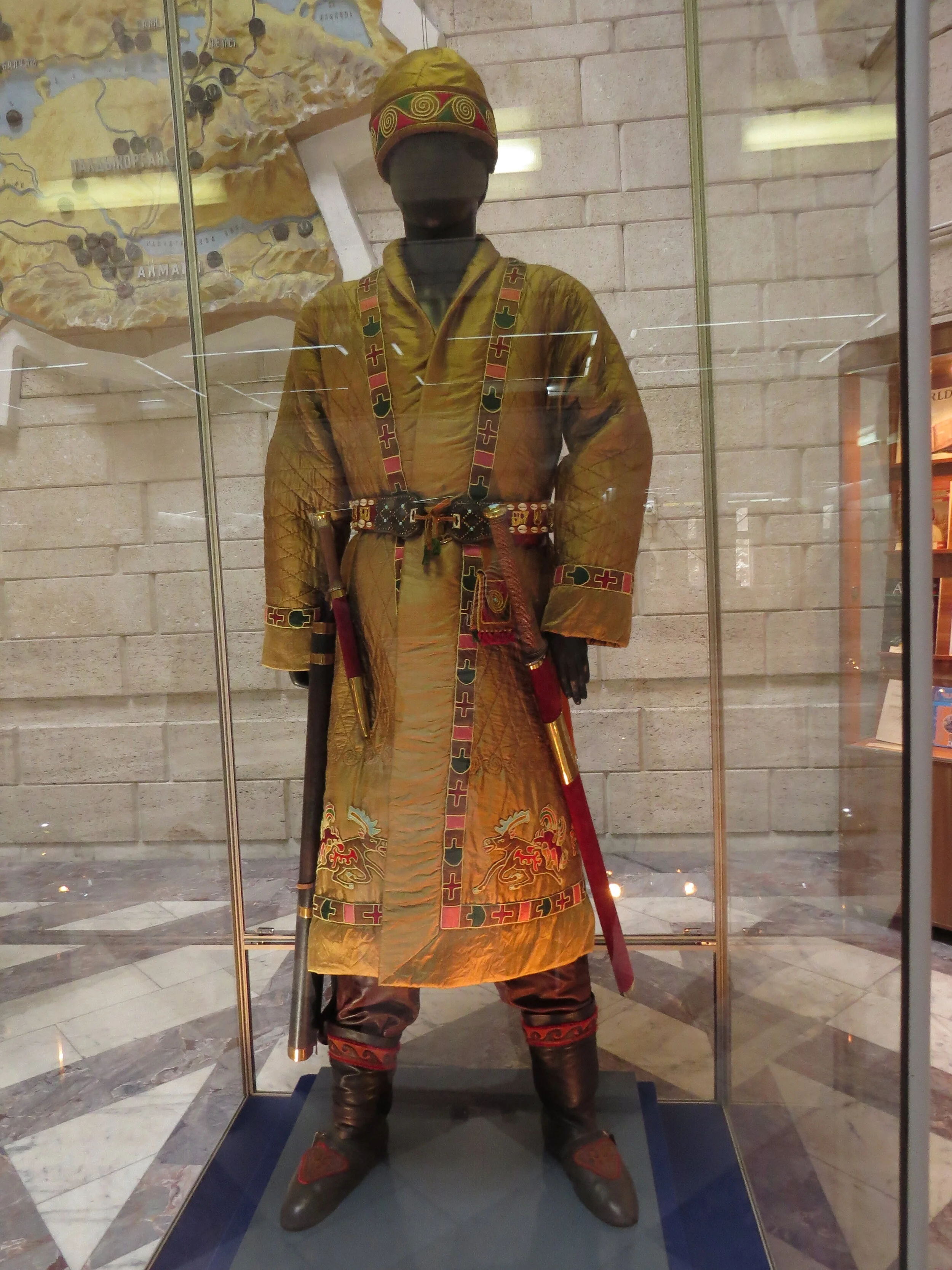 The Kazakhstan Museum is a huge building with lots of carved stone and blue domes. I spent several hours roaming around. There are many displays of costumes: from peasant linens to soldiers’ shields to weavings and gold embossed robes. Coins, tools, an entire furnished yurt. I like the display of women weaving best. The fabrics are gorgeous. There’s even a whole floor with dead, moldy animals as well as bones, rocks and everything else that relates to a proud history. Check out the museum here: